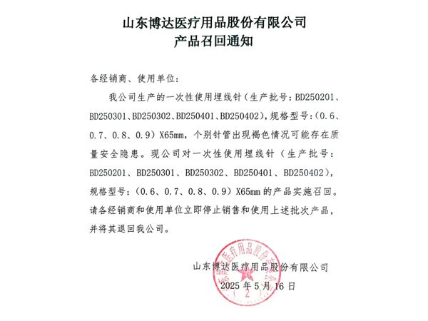 山東博達(dá)醫(yī)療用品股份有限公司是生產(chǎn)可吸收性外科縫線專業(yè)廠家,主要產(chǎn)品有可吸收縫合線 、內(nèi)窺鏡圈套線、穴位埋線、快吸收美容線、醫(yī)用羊腸線 膠原蛋白線以先進(jìn)的生物技術(shù)提取了健康哺乳動(dòng)物內(nèi)臟的膠原蛋白為基材,采用先進(jìn)的工藝加工而成,線體的主要成分為高純度膠原蛋白,并獲得了國(guó)家發(fā)明專利,頒布了YZB/國(guó)6301-2013《可吸收性外科縫線》產(chǎn)品標(biāo)準(zhǔn),并通過(guò)了ISO9001:2015和ISO13485:2016質(zhì)量管理體系認(rèn)證。